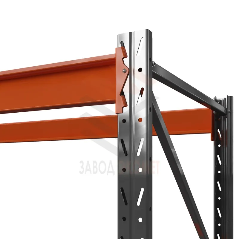 Стойки перфорированы по всей высоте, а балки крепятся без болтов, что дает возможность быстро и легко поменять расстояние между ярусами.